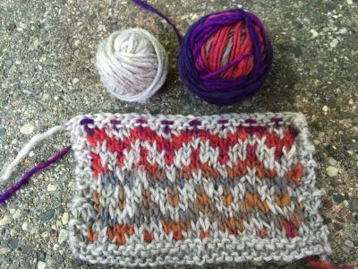 Then Felicia dives into teaching about knitting with variegated yarns: about yarn weight, gauge, managing color with stitch patterns, mixing and blending colors in knitting, and an excellent section on pooling.