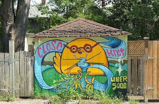 The other type of knit graffiti – out of paint rather than yarn. Love this one, spotted in the east end of Toronto. Click through to see a larger version.