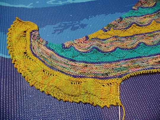 I left the knitting down for the last week, and, picking it up again, it’s kind of like starting over. I used to knit every time I sat down to watch TV. With the pain I had, I broke that habit, and now I have to retrain myself.