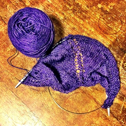 The kind of mistakes that make a crescent shawl into an asymmetrical shawl. I had to rip out an entire 5-hour car ride’s knitting. It’s deadline knitting and couldn’t go into time out. I had to reknit right away. Two steps forward and one step back.