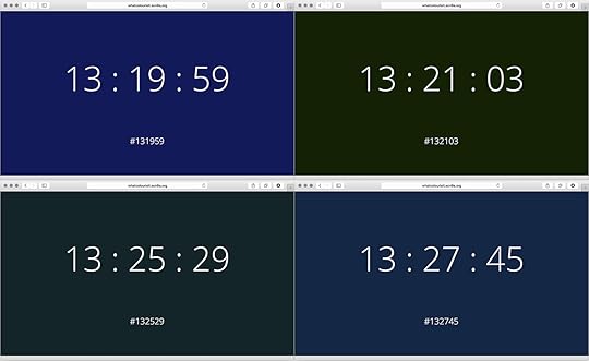 Love this. Absolutely LOVE IT. A website that displays the color of the time. It translates the current time – a 24 hour clock, with seconds – to a hexadecimal code, which represents a color.