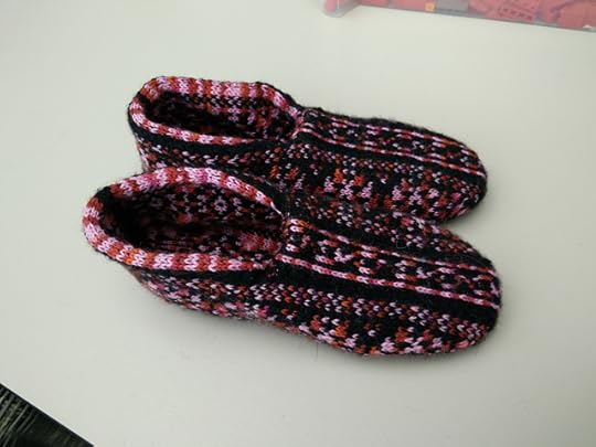 And because one Knitty project per issue isn’t enough, apparently, Kathleen (of Wavedeck above) has now started a pair of Drogo slippers.