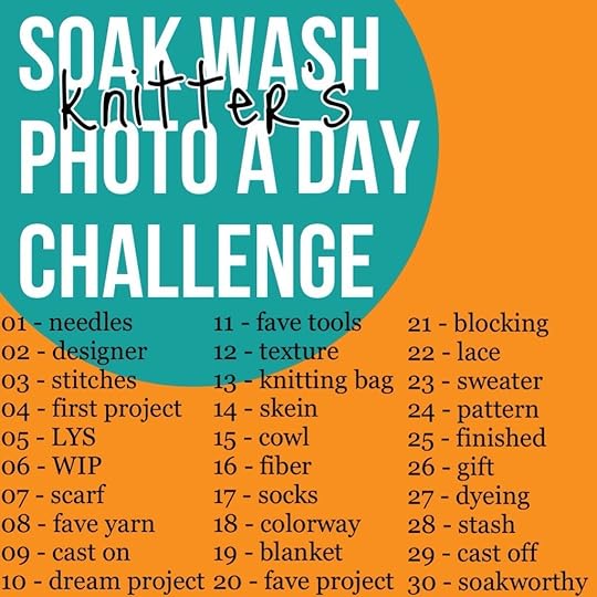 Friends of Knitty Soak are hosting a photo contest this month. They’re encouraging knitters (and others!) to post pictures on Instagram and other social media. Each day has a theme, as show on the right.  At the end of the month, one randomly selected participant of the challenge will be chosen from and contacted on Instagram to win some Soak goodies. I’m not personally on Instagram, but I’m posting pictures on Twitter anyway because it’s fun!