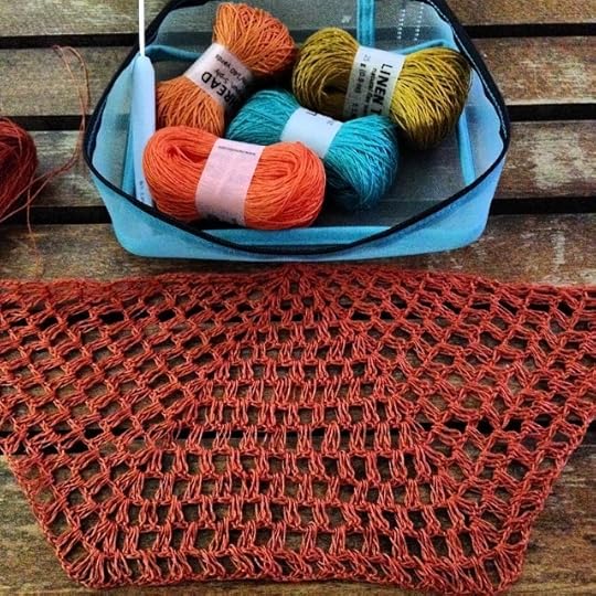 I love crochet as a relaxation. I like to just follow a pattern and have fun, not worrying about design elements or writing the pattern or any of the other stuff I worry about when I’m knitting. I’m currently working on the lacy flower scarf that was in the spring/summer 2014 issue of the Noro magazine. I love how this uses the chaos of a Noro colourway and organizes it into something totally different.