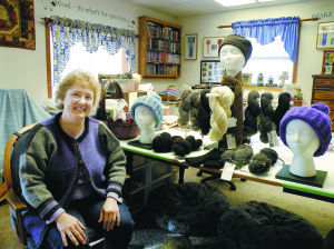 Knitter Judy poses with some of the fruits of her labors.