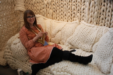 Kalamzoo, MI, artist Annie Eckrich, has knitted herself a house. Annie, a recent college graduate, created the house, which is on display at the Urban Institute of Contemporary Art, in Kalamazoo, as part of the ArtPrize program.