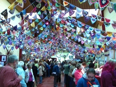 6,212 crocheted bunting triangles welcome and overwhelm us!