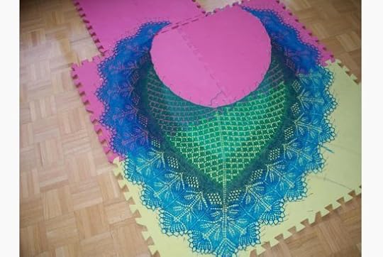 Absolutely heartbreaking: A Toronto area knitter worked on a beautiful shawl project while she sat at the bedside of her critically ill husband. Susan Cottrell knitted as they waited for his double lung transplant, she knitted as he made his slow and difficult recovery. And at the end, she had an absolutely spectacular shawl. She blocked it, and wrapped it up to take the hospital to weave the ends in, ready to start wearing it.