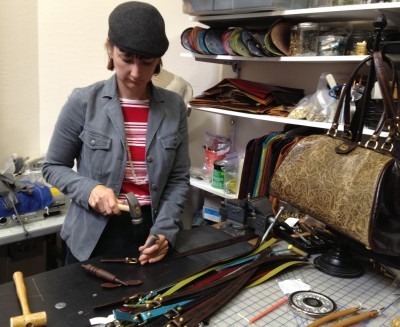 Because I’m curious (nosy) I ask owner Larisa Flint Snydal a few questions about Offhand Designs. She happily answered my questions and even sent over a couple of pictures of herself working on bags.