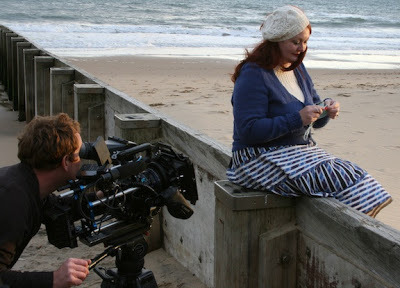 Designer Susan Crawford has written on her blog about filming her scenes, testing out the age-old theory that handknit swimsuits won’t stay on. The very brave Miss Fleur McGuerr took to the (very cold) sea in her handknit swimsuit, proving once and for all that a well-constructed swimsuit won’t necessarily fall down.