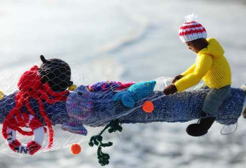 A knitting group from Yorkshire, UK, has released a “guerilla knitting calendar” for 2014. The Saltburn Yarn Stormers are responsible for some of the most spectacular yarnbombing we’ve seen: they did the Olympic-themed installation on their local pier, and a more recent seaside-theme one. The calendar features pictures of their work.