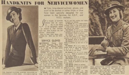 Fascinating insights into the knits and knitters of a previous generation: a blogger writes about a set of patterns published in Australia in 1943, with patterns for servicewomen, and works through a very clever pattern for gloves worked on two needles.