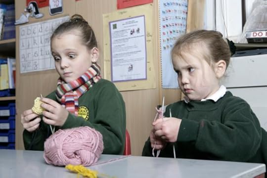 A primary school in Kent, UK, has added knitting back to their formal curriculum, after seeing the benefits of a lunchtime knitting club. Students are improving their mathematics skills, and teachers are seeing positive changes in behaviour, also: students are more likely to sit for longer, and knitting has increased social interaction between students. Rather than indulging in solitary pastimes like playing with a phone, children are sitting and talking to each other. (Note: Daily Mail link.)