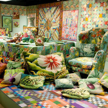 The London Fashion and Textile Museum is currently hosting a retrospective of the work of designer Kaffe Fassett. Over 100 of his own pieces are on display: knits, quilts, paintings, tapestries and even some mosaics. I was lucky enough to be able to visit it last month, and was transfixed by the explosion of color and texture. This video news report from BBC gives you a taste.
