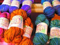 A great piece about the work of Alaskans Jules Joy and Sarah Browngoetz, yarn dyers and owners of the store ‘Knitty Stash’. The colors of their own line of yarn, called the Alaskan Yarn Co., are inspired by the natural beauty that surrounds them. There are colors to match native flowers – particularly the vivid lavender of the lupine – colors inspired by the water of nearby Kachemak Bay, and colors to captures the leaves of the trees as they change through the fall.