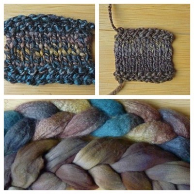 In spinning/knitting news. I can’t leave well enough alone. I thought I want the blended version of my Fiberstory yarn for a sweater, on the right below.