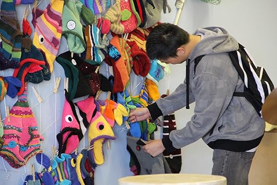 The East Bay Knitters’ Group in California is making fish hats to gift to local high school students who achieve high marks on their state math exams. The program was started by Richmond High School math teacher Lisa Holmes. She had knitted herself a Fish Hat, and students loved it so much that some asked her to make them one. She made a deal: if you score a high mark on the math exam, you get a hat, commemorating your prof-FISH-ency. The program has grown beyond the school, and Lisa enlisted volunteer knitters through a local yarn shop, and over 100 fish hats were made and donated to be awarded to students. The students love the recognition, and the program has been an enormous success!