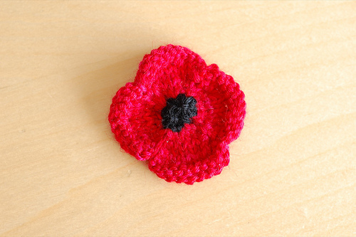 Friend of Knitty Laura Chau has published a pattern for a knitted poppy. No matter your feelings on armed conflict, there are members of the armed forces who are injured in service to their country, and need financial and emotional support as they recover.