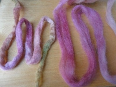 Yes, I stripped the fibers. This is another time that I monkey with my fibers. To see what colors look like together.