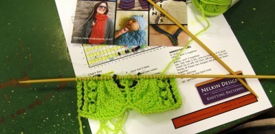 For me, it’s knitting with beads. I’ve dabbled in it, but I’d never completed a full project, and I knew I wanted to learn more. As luck would have it, knit designer Laura Nelkin was scheduled to come to Toronto, to teach at class at Lettuce Knit. Laura’s one of the best designers working with beaded knits; her designs are beautiful, interesting, and clever. She’s got designs for those just starting out with beads, and designs for knitters seeking a serious challenge.