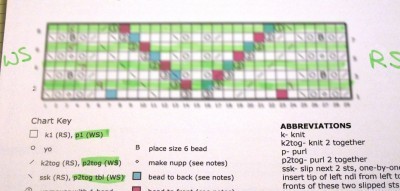 If the chart shows the WS rows, use a highlighter to highlight those rows, and highlight the corresponding WS definitions of the stitches on the chart legend. That way, you’ll always know which way you should be going on a particular row, and how to work a given symbol’s stitch on that side. Simple and so very very helpful.