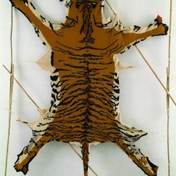 The University of Maine Museum of Art in Bangor is hosting an exhibition of knitting as contemporary fine art. Ruth Marshall’s “Vanished in Stitches” exhibit is on display until June 9th. The artist knits accurate life-size pelts of rare and endangered big cats – including ocelots, tigers and leopards. Her years working at the Bronx Zoo, she launched the project to highlight the plight of these rare and beautiful creatures. More about the artist and her fascinating work at her website.