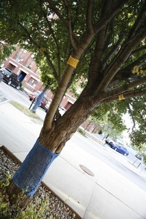 A fun slide show and profile of the Gorilla Knitting Crew, a yarn-bombing group in Sacramento, CA. What’s notable about this crew is that it’s a family! Candice and Adam Foster and their four kids, Bella, 13, Nieyah, 7, AJ, 6, and Lukas, 4, started the Crew last summer. In addition to decorating the city and its landmarks, the team also makes hats for the homeless and leaves them lying around for the needy to find.