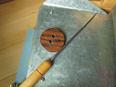 If you use a button as a diz, don’t use one with a shank on it. The fiber will wrap around it no matter how careful you are, or how many bad words you say.
