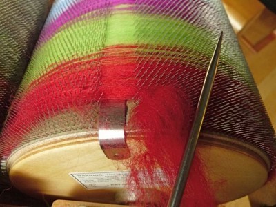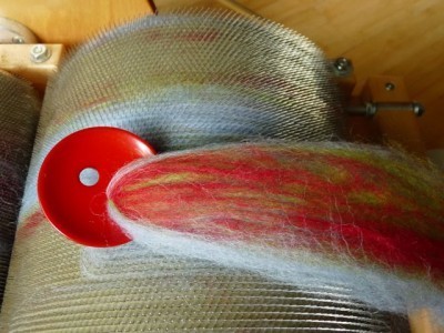 I took a quick drum carding class from Sarah Anderson this winter and one of things she demonstrated was dizzing off of a drum carder.