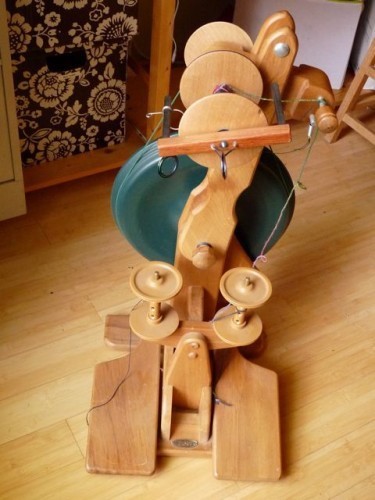 I love this wheel. I love to make singles and ply on her. She fantastic for big air or textured yarn. She’s heavy and sexy and spins forever. She got so noisy I almost quit using her altogether.