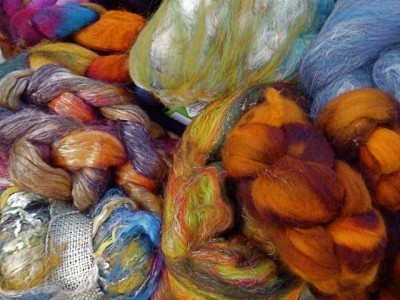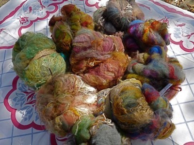 I love art batts, both the sexy smooth and the everything but the kitchen sink kinds. As I was going through stash to make my spinning plans I discovered a bunch of Bricolage Fiber Studio batts.