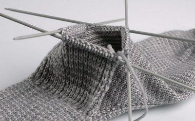 I'll use the corespun yarn for large patch pockets on the front of the sweater. I want the pockets to be nearly sculptural – wider at the bottom with short rows to make them puffy.
