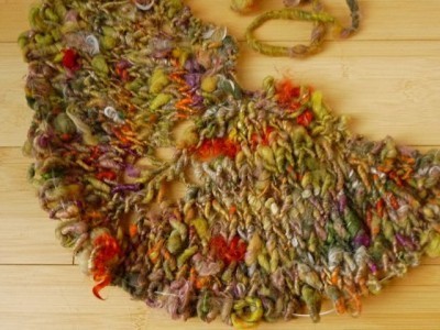 I used needles much bigger than I would for a millspun yarn of the same wpi or even a smooth yarn of the same wpi. It's crazy light yarn, but looks heavy because of all of the texture, another cool thing about corespun. I'm getting about 30 yards out of each batt I spin and I have 4 batts set aside. I'll have to see how big of a shawl that makes at this gauge.