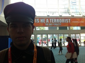 But once we reached San Diego, all was well. We began by almost running over Sean Austin at the airport (“Nooo, driver! Don’t kill Sam Wise!!”), and continued by devising a plan to pretend that we were Famous People That Everyone Should Know. We did so by hiding our faces with our hands and hurrying everywhere. Cool thing is…it worked…which shows you just how gullible people are.