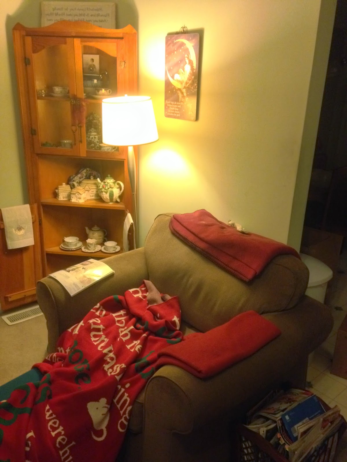 If I'm not writing in my bedroom, then I'm out in the living room lounging in my favorite chair.