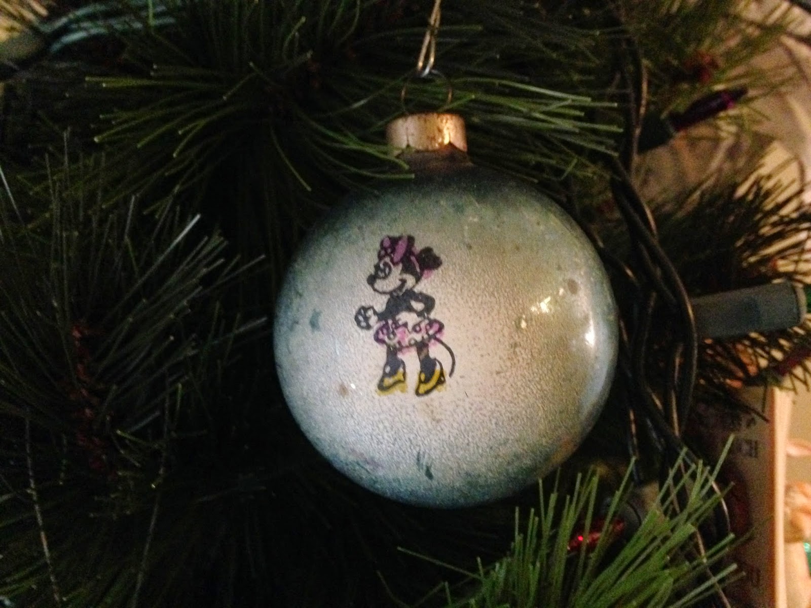 One in particular is really old. It's a small blue ball with Minnie Mouse on it. I have no idea where it came from, but this ornament meant something when we were kids. Each year my sister and I would take turns hanging Minnie on the tree. Hanging the ornament meant the holidays were here.