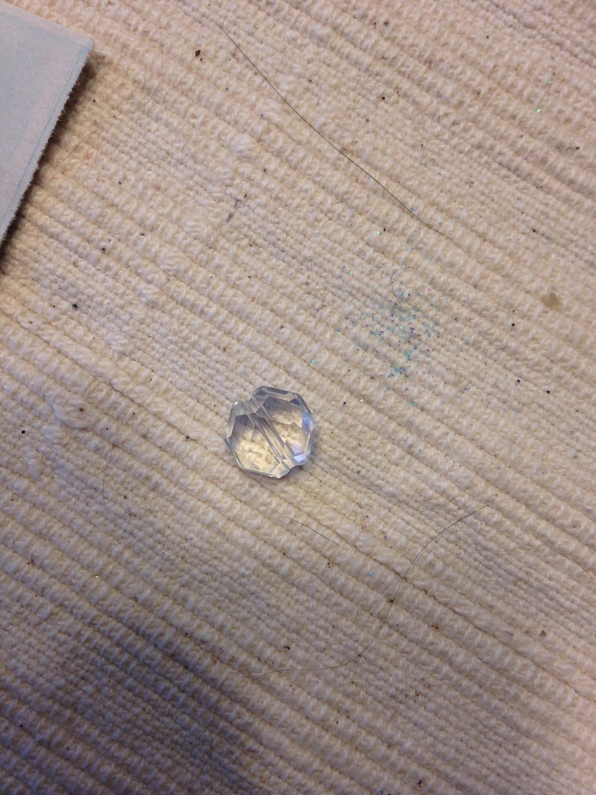 Next, I added a door knob. Since I make jewelry, I have a LOT of beads. I dug out a fairly large, kind of flat, crystal