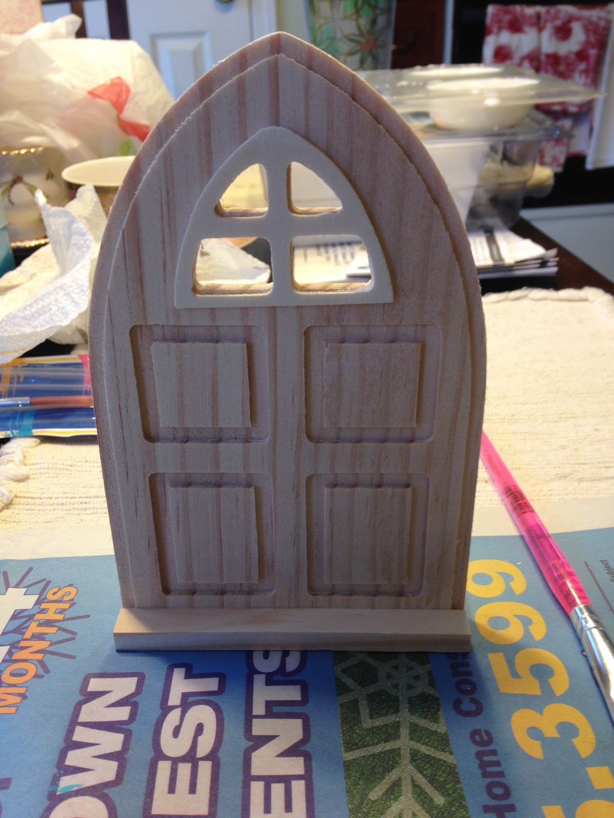 The first thing you need to do is find a small door, any kind of door that makes you happy. Sis ordered a set of 6 doors for me from Amazon. Here's what they look like out of the package: