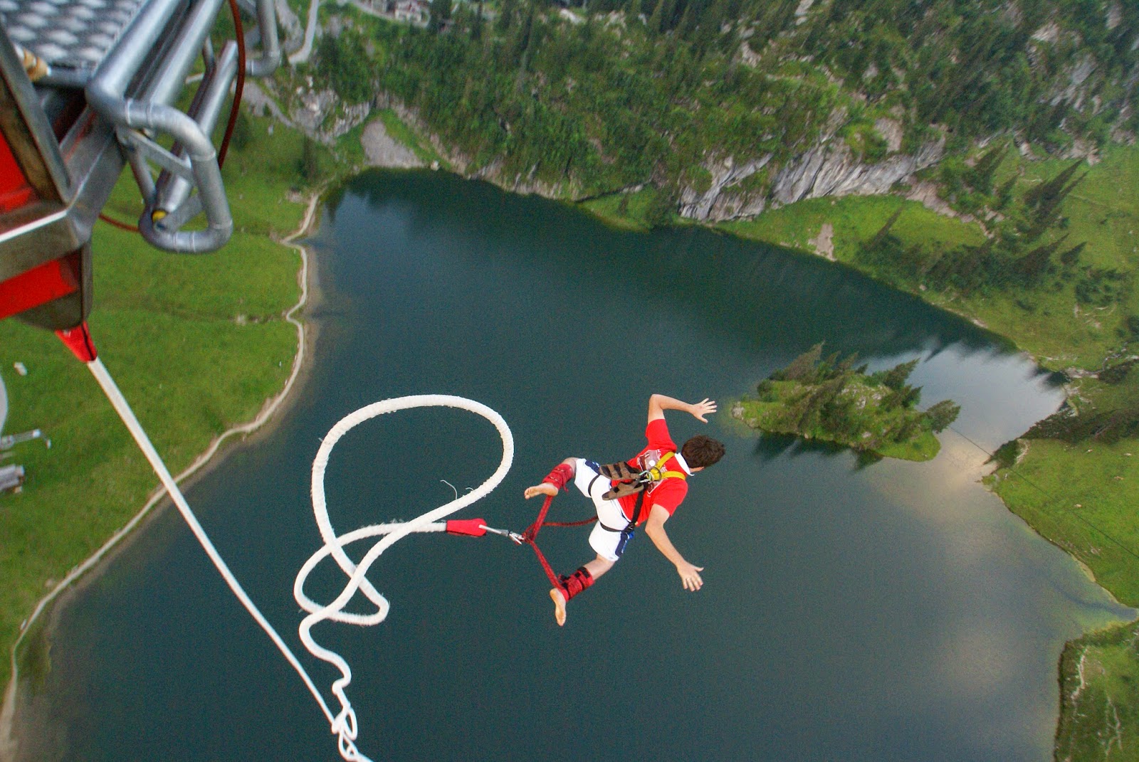 Anyway, what you couldn't pay me to do in a million years is jump out of or off of anything. You will never hear me speak about skydiving or bungee jumping or hang-gliding. I am deathly afraid of heights and it takes a lot just to get me into an airplane.So the above picture, yeah never ever ever going to happen. If it did happen, somehow, like if someone tricked me and somehow made me think we were going to a huge bookstore and they were giving away books. Then they told me we had to strap into this contraption because that's how you got to the bookstore and I stupidly did (which I wouldn't, but let's pretend) and then the doors opened and I was presented with the above view. My face would look like this: