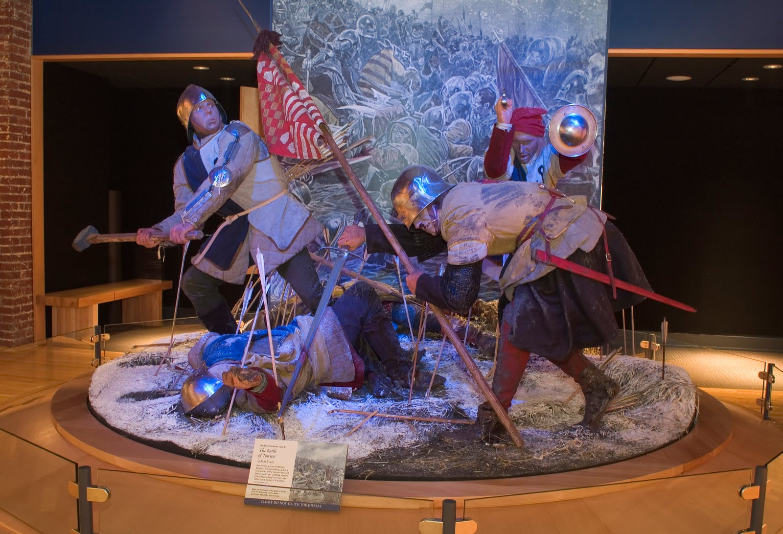 Okay, so I'm back again to talk about my totally cool job at The Frazier History Museum. One of the coolest things about the museum are the tableaux that you can find all throughout the floors. I'm sure you are asking about now, "Gwen, what is a tableau?" And I am here to tell you that they are life-like figures that represent moments in history. Such as the one to the left, which represents the Battle of Towton. They are made from fiberglass, but let me tell you if you couldn't touch them (which you can't cause you don't work here) you'd think they were real. :-) I often get children that come up and tell me the figures move. My first response is the pat thing about not having a cool Egyptian tablet like Night at the Museum so they can't move. They are fake, blah, blah, blah. But sometimes I get those persistent kids that listen, somewhat impatiently, to this line of bull and still tell me the figures moved. One kid told me that a figure winked at him even after I explained that there was no way since the figures are not alive. When he still kept tell me it winked, I of course did the totally adult things and said, "Well did you wink back?" He thought briefly and said, "No." My reply, "Well next time just wink. He gets bored and likes to make friends." He's satisfied, I'm satisfied, life moves on.So the next time you go into a museum and find they have tableaux. Wink at them. They get lonely and just want to be noticed.
