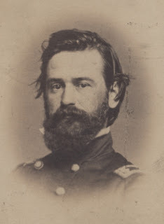o start out the story, the museum is currently prepping for an exhibit entitled Civil War: My Brother, My Enemy which opens in October. Part of the prep calls for the creation of text panels, which of course contain photos. One of the photos that'll be used is of a man named Major John Davidson who family lived here in Kentucky. Oh, his picture is to the left so you can get a look at him. Anyway, there's a mock-up of the panel with him on it downstairs across the hall from the curators' office. Next to his photo is a sticky note that reads something like "Back up off him you Ho. He's my man." This was written by Kelly . . . wait "Kelly," apparently in answer to some email that had been sent claiming ownership of said man. Next to the sticky note is another one in the shape of a heart that reads "J.L. + J.D. = True Love." Who, you ask, rendered this scathing reply to the Ho note? Jodi . . . "Jodi" of course. Under all that, is another sticky note that reads: "He doesn't want either one of you. He loves me. M" I'm sure you are wondering who the mysterious M is. It's another person who works in the exhibits area named Monty who figured he might as well jump in and add his dog to the fight, as it were. Now Monty is married with a baby daughter, but that never stopped a history geek before right??