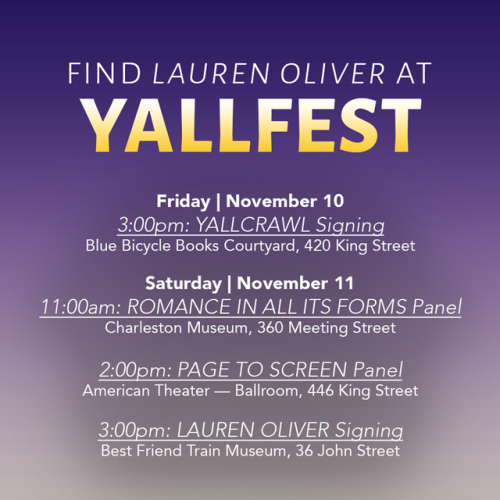 YALLFest is one of my favorite events to go to and it’s this weekend! There’s always a great energy there, and I love Charleston. I have some fun events this year - hope to see lots of you there!