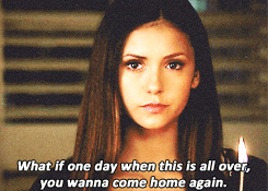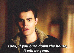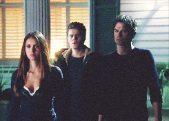 For me this scene was very telling and symbolic. Especially the last gif. I don’t wanna sound like a fatalist, but I see the series ending that way, with no one left from the people we knew since the pilot, but the main triangle. And in the last one, Damon and Elena walk away together (aka endgame) while Stefan lags behind looking at the ruins of the past.