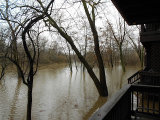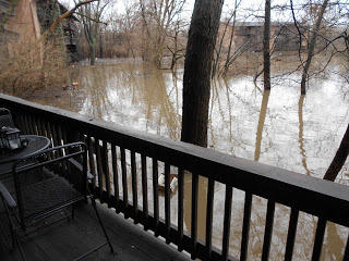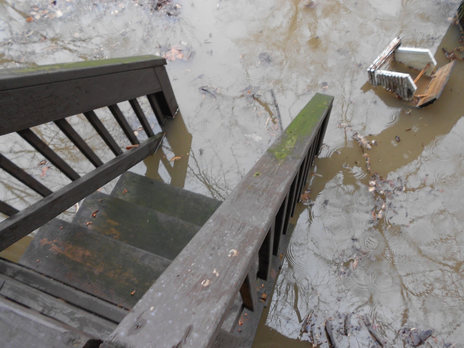 Apparently hoping for the best just wasn't good enough. The water from the lakes rose while I was sleeping. It cleared the distance from the waterline to the deck within hours. That's about fifteen feet.