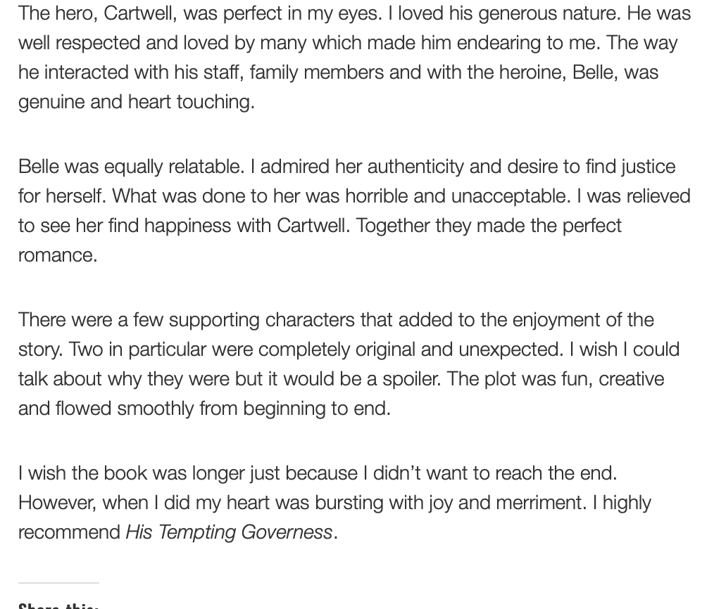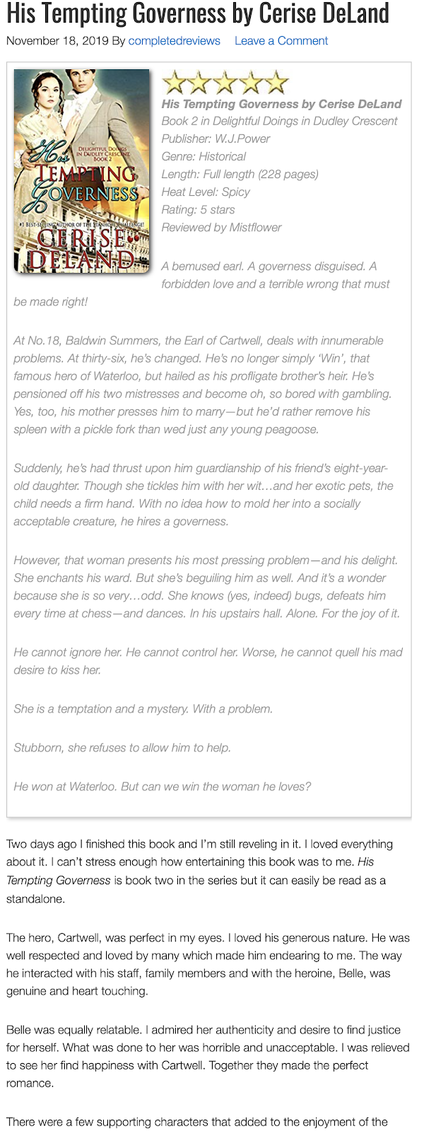 Another 5 Star review for HIS TEMPTING GOVERNESS! YAY!