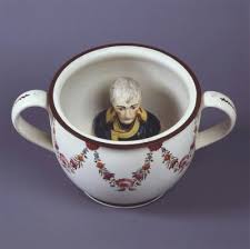 A pot is easy enough to imagine. Here is one with a fellow inside, who presumably, is there to guide one's aim!