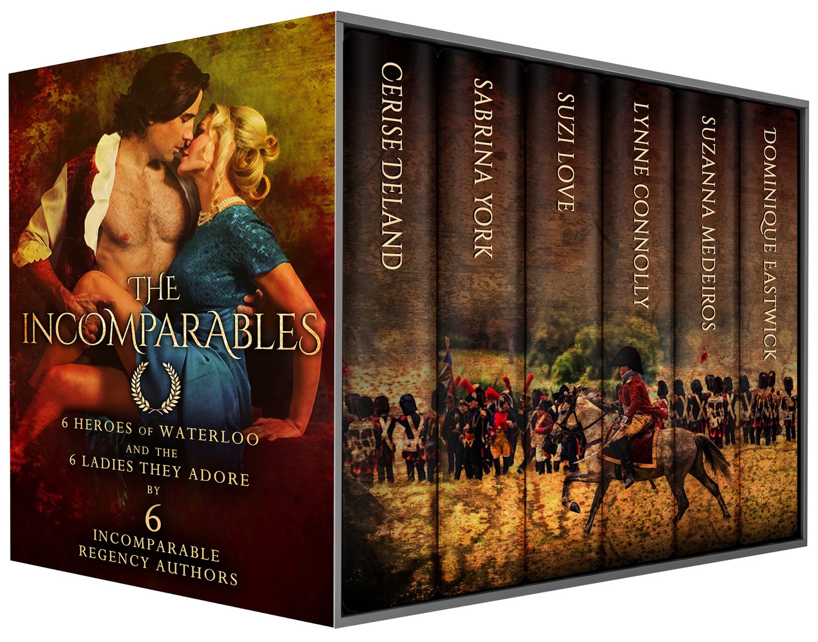 The Incomparables: 6 Heroes of Waterloo and the 6 Ladies They Adore This limited edition box set includes 6 scorching romances that commemorate the 200th anniversary of the June 18, 1815 Battle of Waterloo.From the Duchess of Richmond’s ball in Brussels to the Battle of Waterloo and beyond, join these six unforgettable heroes as they journey back from the physical and emotional trials of war and discover the passion that thrills the body can also heal the heart.