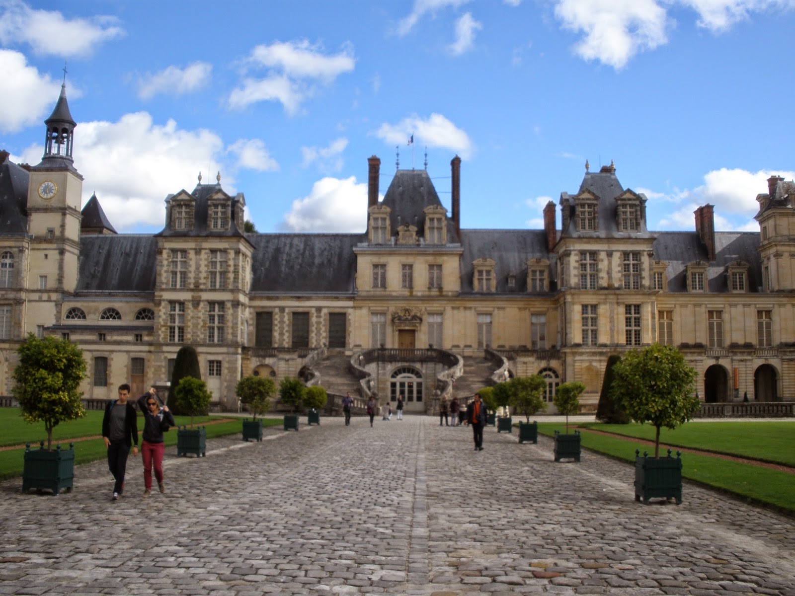 Fontainebleau, Grand Courtyard of Main entrance Travel is a wonderful way to do historical research for novels. Time-consuming, it is an intriguing way to put drama into your day...as you eat and drink you way around your chosen paths!My biggest kicks come from standing in the very spots that others infinitely more interesting than I have stood. Reflecting on how they must have felt at certain points in their lives—or seeing what has become of those places long after they have passed sends ripples of ennui down my spine.