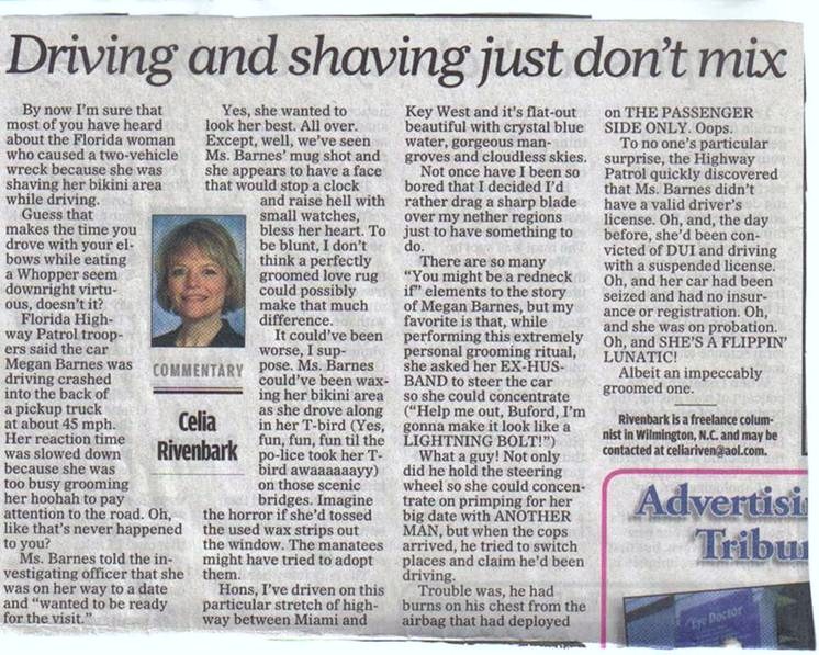 Shaving while driving? A Florida babe preps her youknow for a date!