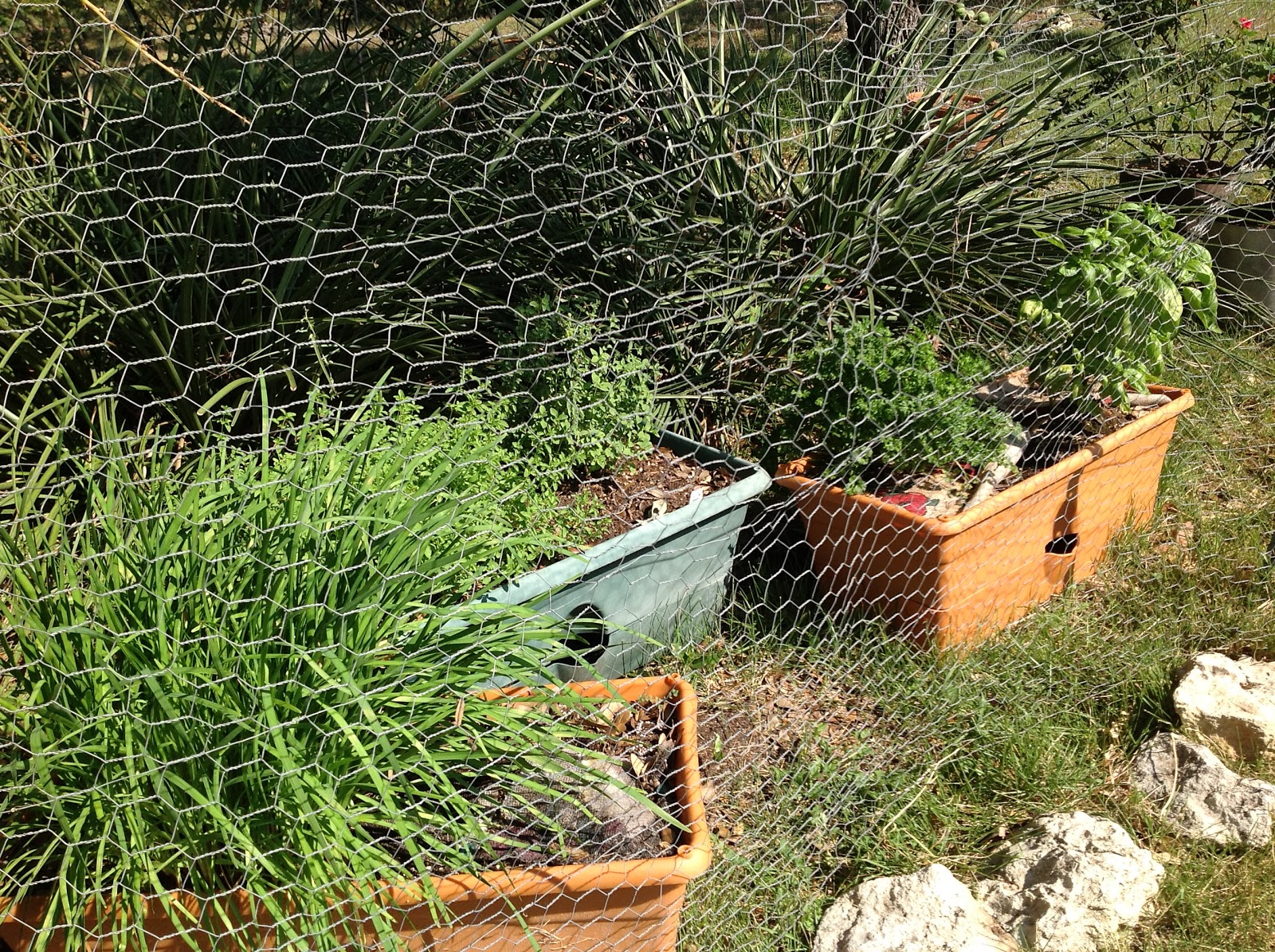When I'm not at my keyboard, I am doing a Chinese Fire Drill to cultivate, water and weed my garden. Pictured here is this year's crop of herbs!